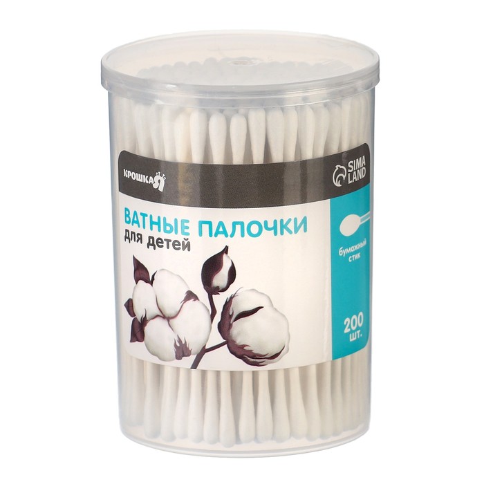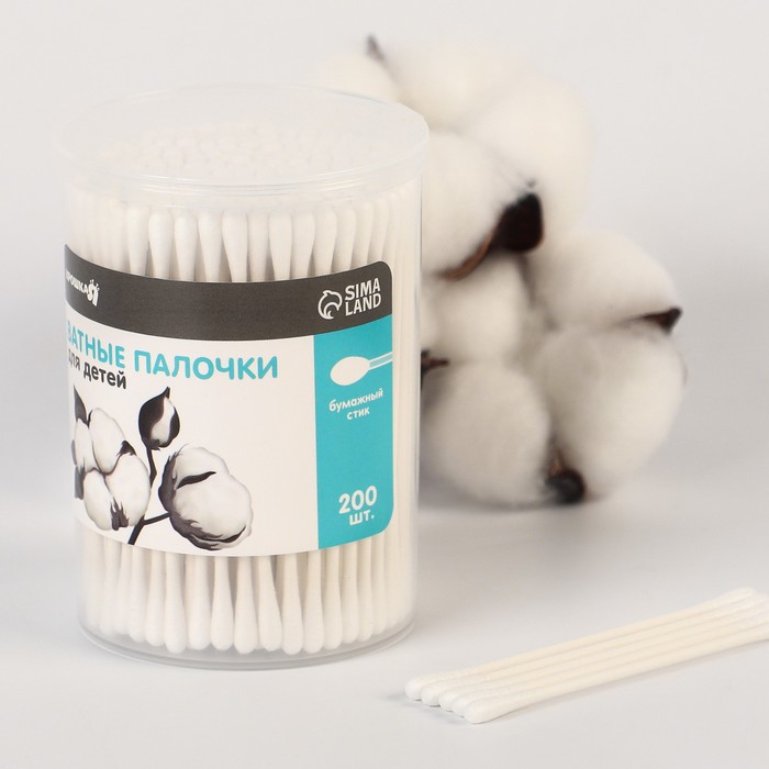 Ватные палочки в тубе 200 шт., тонкие, наконечник - классика, хлопок/бумага(стик)