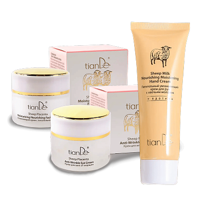 Дари полезные и эффектные подарки! Линейка Sheep Placenta – это косметика с культовым антивозрастным компонентом – экстрактом плаценты, который помогает замедлить процессы старения. Воспользуйся отличным предложением: эффективный крем для лица и крем для век из серии, а также крем для рук с овечьим молоком – по выгодной цене!