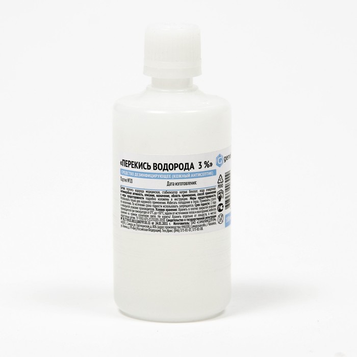 * Действующее вещество: перекись водорода 50% - от 5 г до 6,12 г в зависимости oт содержания водорода пероксида в исходной субстанции - эквивалентно содержанию водорода пероксида 3 г.