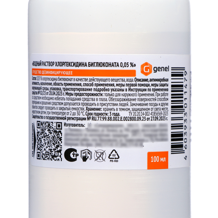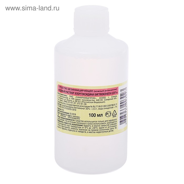 Водный раствор хлоргексидина биглюконата 0.05%, пластик, 100 мл.