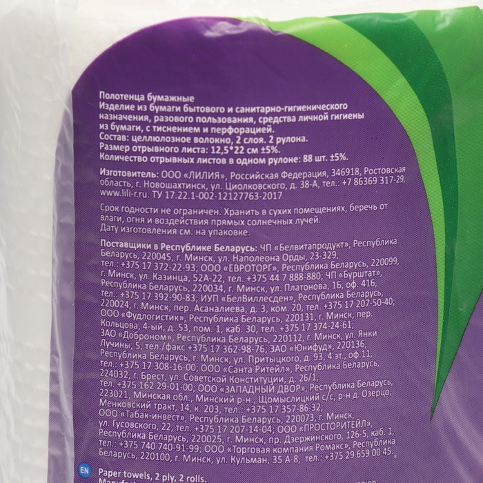 Полотенца бумажные «Лилия», 2 слоя, 2 рулона