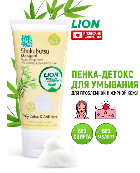 249 340 LION Thailand Shokubutsu Пенка-детокс для умывания с бамбуком, 100 г