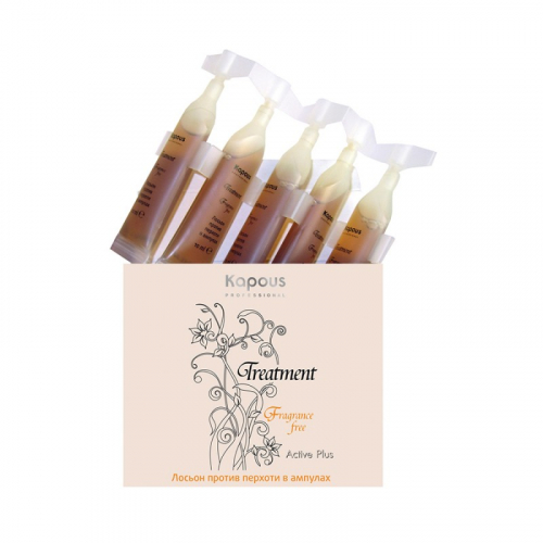 Серия «Fragrance free» не имеет парфюмированных добавок. Лосьон в ампулах с повышенным содержанием экстракта хмеля и Провитамина В-5 эффективно останавливает чрезмерное выпадение волос, нормализует обмен, усиливает микроциркуляцию крови кожи головы, что обеспечивает интенсивное питание растущих волос. Сохраняет волосы здоровыми и эластичными. Применение лосьона «Treatment» Active Plus прекращает выпадение волос и обеспечивает рост новых здоровых волос.