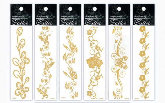 ТАТ207 Тату наклейки золотой песок, браслеты ленты асс-т Лист 4,5х16,5см.12 / 1797