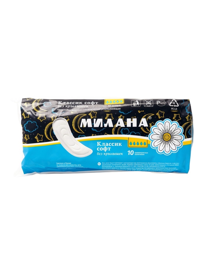Милана “Классик Софт без крылышек” НОЧНЫЕ идеально подходят для ночного использования, обеспечивая надежную защиту, комфорт и уверенность до утра.