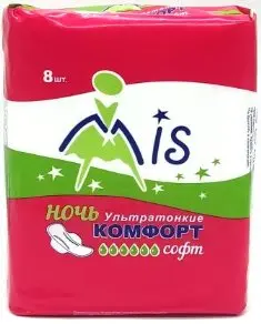 Прокладки Mis КОМФОРТ софт ночь 6 капель, Ультратонкие (2мм) гигиенические прокладки с боковыми крылышками. Увеличенная длина прокладки 285 мм с внутренним слоем «Аэрлайд», надежно впитывает и удерживает жидкость, превращая её в гель. Верхний слой: СОФТ - мягкий как хлопок верхний слой . Прокладка надежно крепится на белье и защитит даже при обильных выделениях, а так же в ночное время. Верхний слой СОФТ, целлю лозные волокна с добавлением суперабсорбента, силикони- зированная бумага, клей.