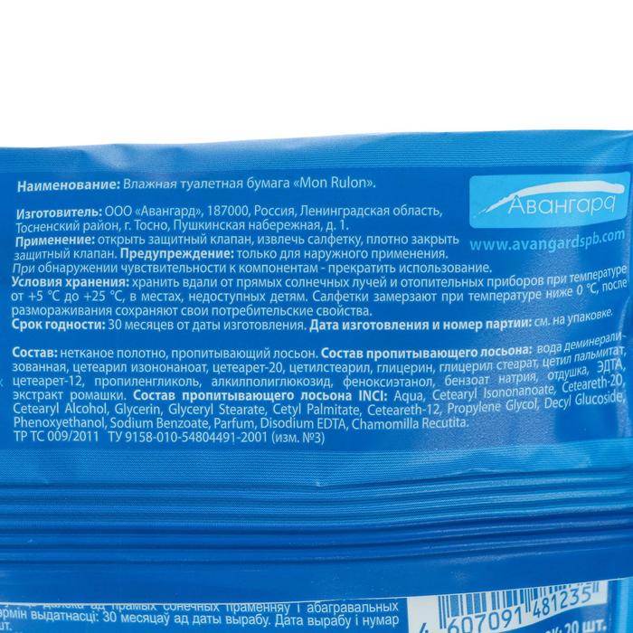 Туалетная бумага влажная MON RULON, 20 шт.