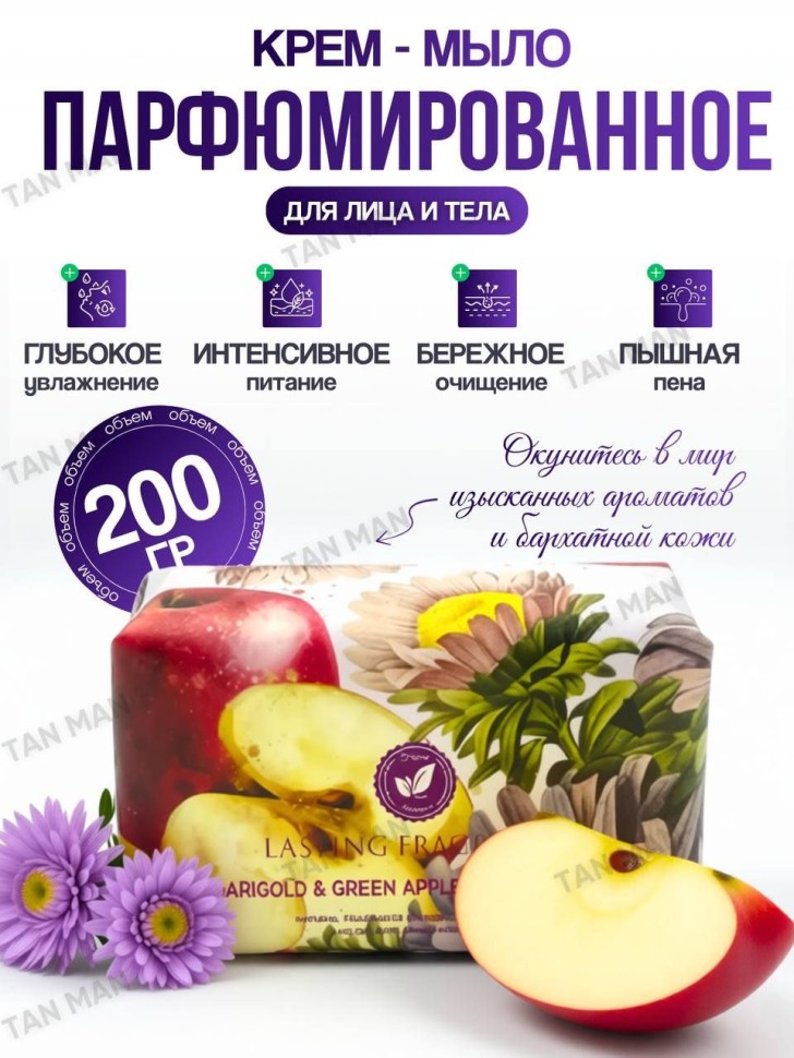 Мыло для лица и тела MARIGOLD & GREEN APPLE Парфюмированное Фруктовое ЯБЛОКО 200г