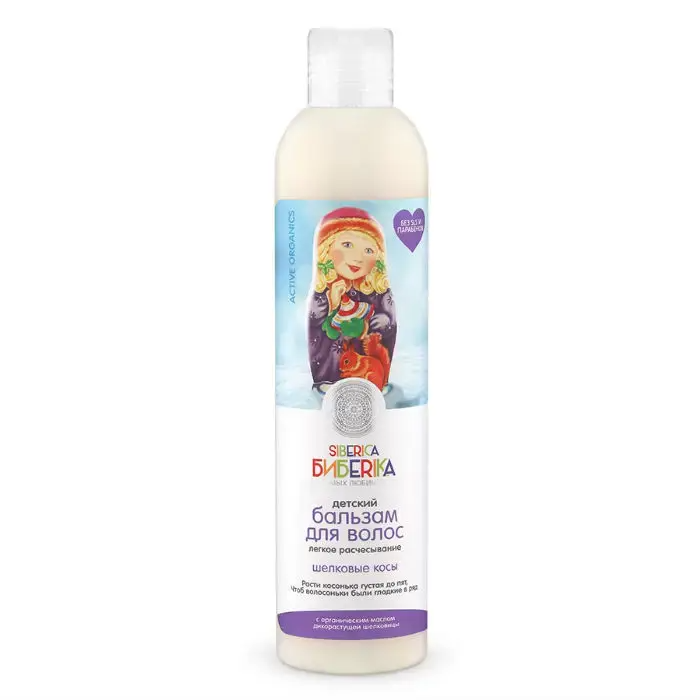 Детский бальзам для волос лёгкое расчёсывание «Шёлковые косы» Aqua, Cetearyl Alcohol, Distearoylethyl Hydroxyethylmonium Methosulfate, Glycerin, Glycine Soja Oil, Morus Nigra Fruit Extract* (органический масляный экстракт шелковицы), Pinus Sibirica Seed Oil* (органическое масло кедра), Arctium Lappa Seed Oil* (органическое масло репейника), Malva Sylvestris Flower Extract*(OF) (органический экстракт мальвы), Phalaris Arundinacea Extract* (органический экстракт шелковой травы), Lauryl Glucoside, Hydroxyethylcellulose, Citric Acid, Parfum, Benzyl Alcohol, Dehydroacetic Acid, Sodium Benzoate, Potassium Sorbate, Tocopherol.