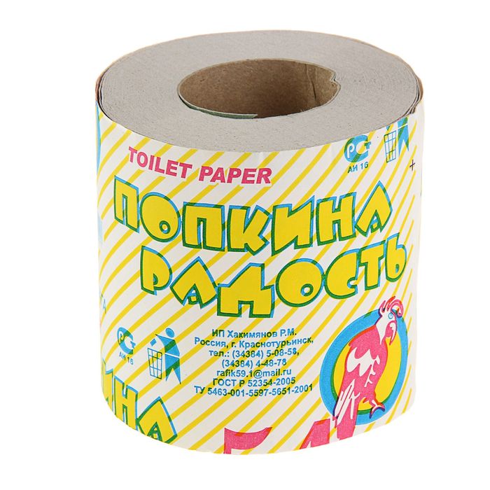 Туалетная бумага «Попкина радость», со втулкой, 1 слой