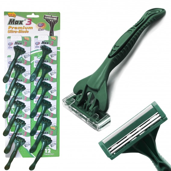 SHV24 Бритвенный станок одноразовый MAX 3 лезвия Зелёный на Блистере./ЦЕНА за 1шт/.12