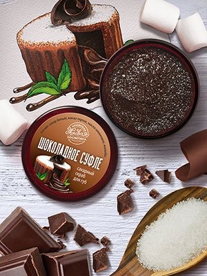 Сахарный скраб «Шоколадное суфле» деликатно отшелушивает омертвевшие клетки кожи губ, разглаживает ее, устраняет шелушение и неровности. Крупинки сахара бережно очищают и массажируют кожу, стимулируют кровообращение в ее верхних слоях, придают упругость и эластичность, ускоряют обмен веществ. Тертое какао оказывает регенерирующее и смягчающее действие. Масла оливковое и жожоба защищают кожу от шелушения и трещин, питают и увлажняют ее, дарят гладкость и шелковистость. Легкий аппетитный аромат скраба делает процедуру максимально комфортной и приятной. После применения скраба помада наносится ровнее и держится на губах дольше.