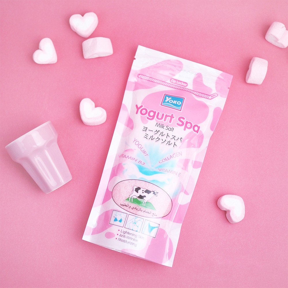 Солевой скраб для тела с экстрактом йогурта, коллагеном и витаминами YOKO Yogurt SPA Salt Shower Bath - оказывает мощное очищающее, противовоспалительное действие, помогает бороться с дерматологическими дефектами.