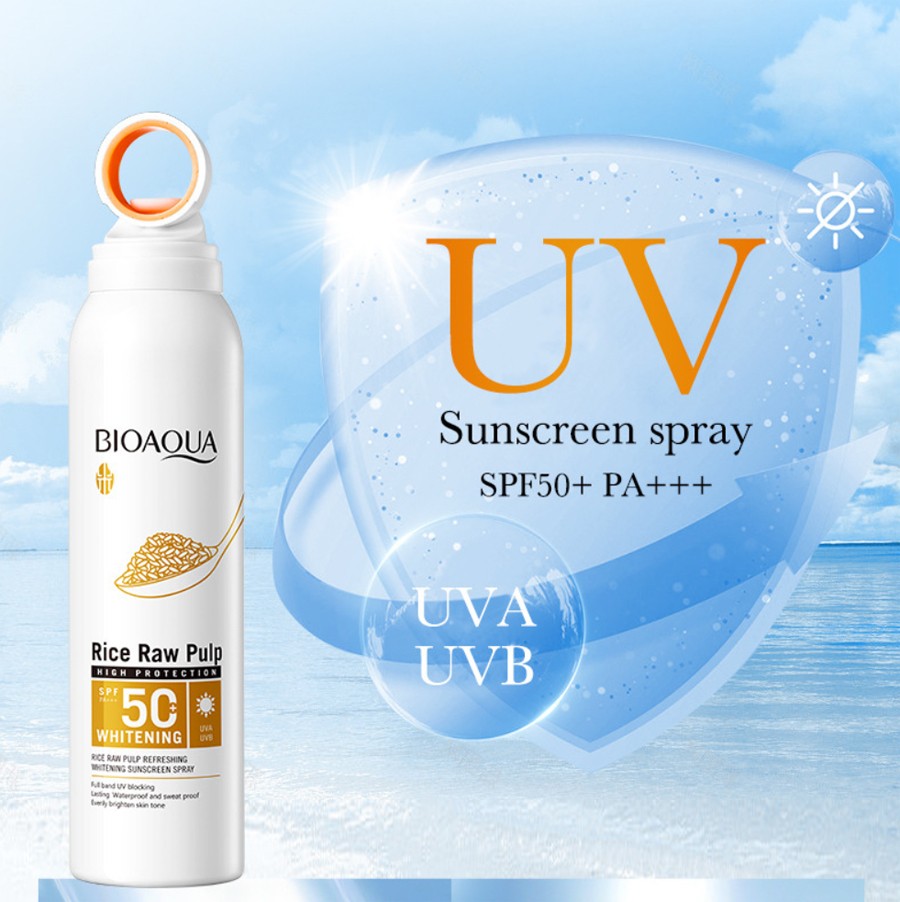 Солнцезащитный спрей с круглым распылителем SPF50 Biaoqua с экстрактом РИСА, 150 мл.
