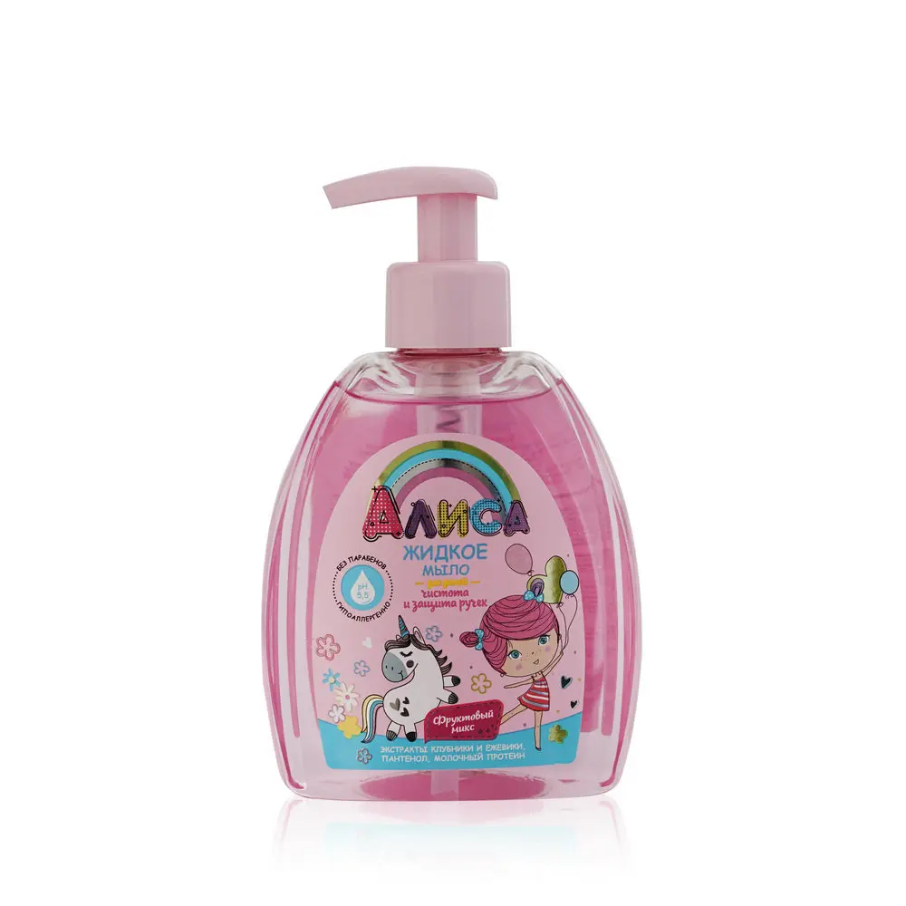 Жидкое мыло «Алиса» имеет мягкую моющую основу и нейтральный уровень pH, поэтому бережно очищает нежные ручки, сохраняя кожу мягкой и увлажненной. Экстракт магнолии обладает антибактериальным эффектом и обеспечивает природную защиту от бактерий. Экстракты клубники и ежевики, пантенол и молочный протеин питают кожу, защищая ее от сухости и раздражения. AQUA, SODIUM LAURETH SULFATE, COCAMIDOPROPYL BETAINE, SODIUM CHLORIDE, COCO-GLUCOSIDE, GLYCERYL OLEATE, PROPYLENE GLYCOL, MAGNOLIA OFFICINALIS BARK EXTRACT, HYDROLYZED MILK PROTEIN, FRAGARIA ANANASSA FRUIT EXTRACT, RUBUS FRUTICOSUS (BLACKBERRY) FRUIT EXTRACT, PANTHENOL, PARFUM, CITRIC ACID, DISODIUM EDTA, METHYLCHLOROISOTHIAZOLINONE, METHYLISOTHIAZOLINONE, MAGNESIUM CHLORIDE, MAGNESIUM NITRATE, CI 17200.
