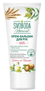 Крем-бальзам для рук SVOBODA "SOS" предназначен для быстрого восстановления кожи рук после интенсивного воздействия внешних факторов (вода и моющие средство, мороз, сильное обветривание).