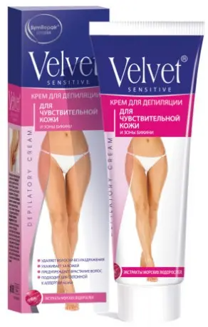 Благодаря новейшей формуле с комплексом SymRepair® крем для депиляции Velvet нежно и бережно удаляет нежелательные волоски без раздражения. Входящий в состав комплекса бисаболол, деликатно ухаживает за кожей уже во время депиляции, быстро снимает покраснение и ощущение дискомфорта. Экстракты морских водорослей ускоряют заживление и регенерацию кожи после процедуры, способствуют восстановлению естественного баланса влаги в коже и ее питанию. Благодаря такому мягкому и бережному воздействию, крем подходит для сухой и чувствительной кожи, склонной к раздражению и аллергии и зоны бикини. Aqua, Cetearyl Alcohol, Glycerin, Potassium Thioglycolate, Paraffinum Liquidum, Aloe Vera Gel, Glyceryl Stearate SE, Propylene Glycol, Panthenol, Ceteareth-20, Urea, Potassium Hydroxide, Calcium Hydroxide, Tocopheryl Acetate, Parfum.