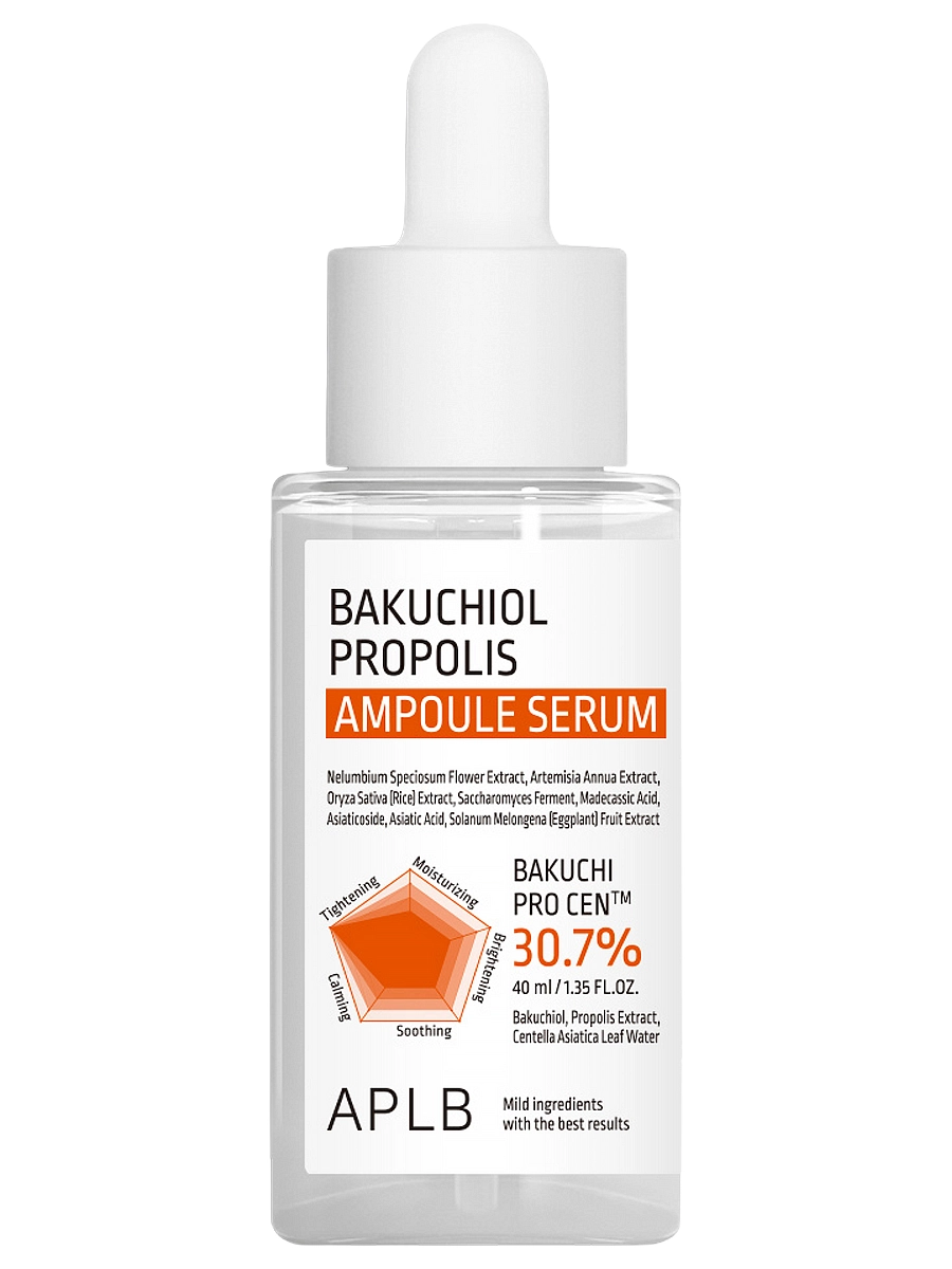 Сыворотка с бакучиолом и прополисом для лифтинг-эффекта идеально увлажняет и надолго сохраняет влагу в клетках, предотвращает потерю эластичности и упругости, выравнивает тон и микрорельеф, нормализует работу сальных желёз и сужает поры, успокаивает раздражение.