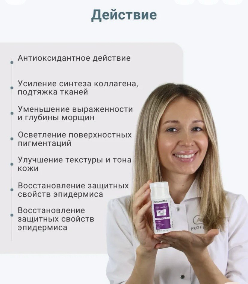 Рассасывающее действие, сглаживает рубцы, пятна и следы постакне.