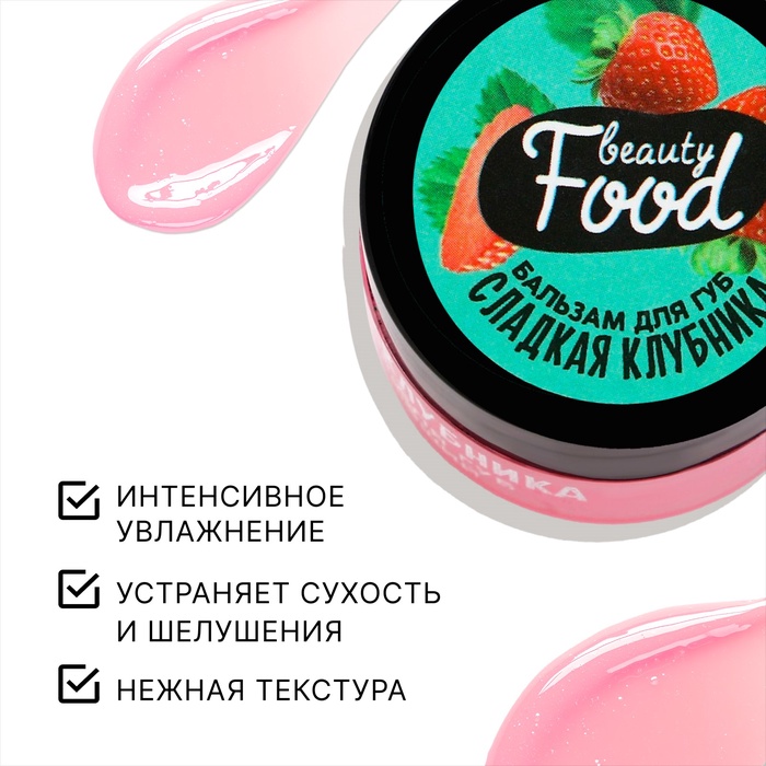 Бальзам для губ увлажняющий, 10 г, аромат сладкой клубники, BEAUTY FOOD