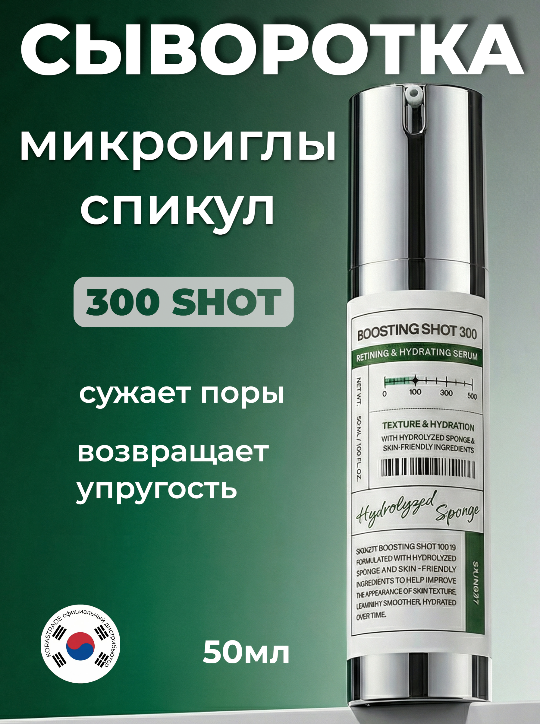 SKIN627 Бустер-сыворотка с микроиглами Boosting Shot 300 (50 мл)+ ПОДАРОК Тканевая маска Cica With Green Tea Facial Sheet Mask