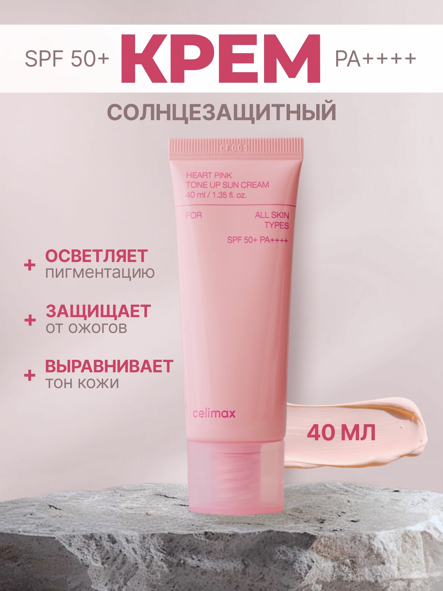 CELIMAX Heart Pink Tone Up Sun Cream Тонирующий солнцезащитный крем с гиаулуроновой кислотой 40мл