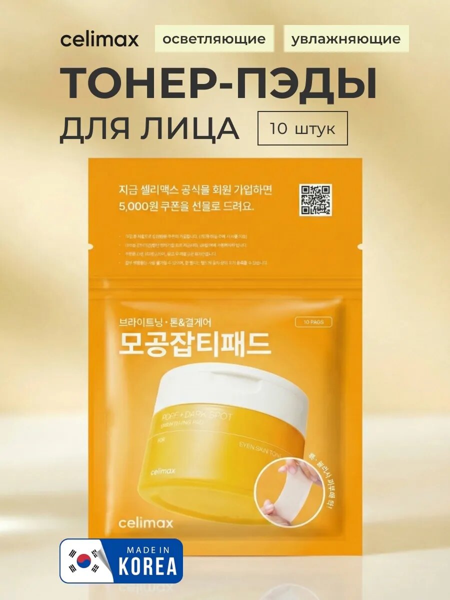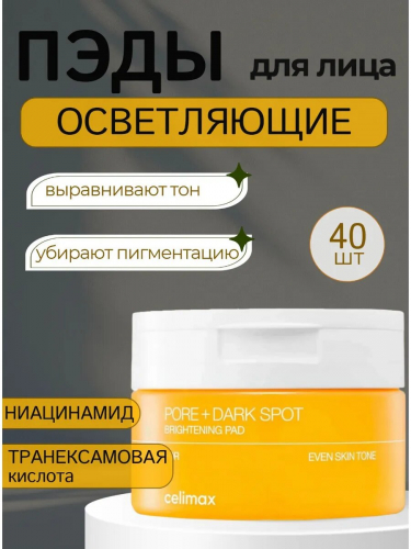 CELIMAX Pore+Dark Spot Brightening Pad Отшелушивающие тонер-пэды для лица против пигментации 10шт
