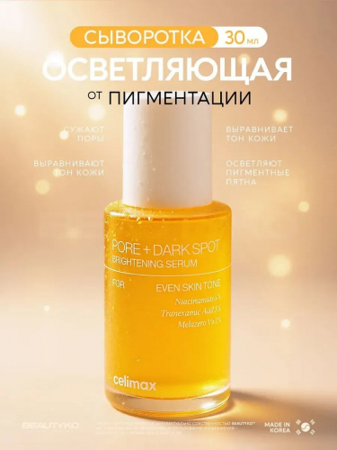 CELIMAX Pore+Dark Spot Brightening Serum Сыворотка для выравнивания тона и рельефа кожи 30мл