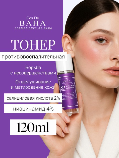 Тоник с ниацинамидом и салициловой кислотой предназначен для проблемной кожи лица. Он лечит акне, помогает избавиться от угрей, отшелушивает ороговевший слой. Нормализует работу сальных желез, устраняет и предотвращает появление жирного блеска на лице.