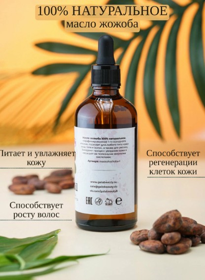 Концентрированное 100% натуральное масло жожоба. Можно использовать как в чистом виде, так и добавлять в своё любимое косметическое средство, чтобы усилить его эффективность. Подходит для ухода за кожей лица, тела, волос. Масло жожоба обладает уникальными свойствами, при этом быстро впитывается, не оставляет жирного блеска на коже, не комедогенно – всё это делает масло необычайно полезным. Средство устраняет сухость, раздражения, замедляет процессы старения кожи. Очень полезным масло будет и для волос, так как оно способствует удержанию влаги, восстанавливает структуру, укрепляет тонкие и ломкие волосы.