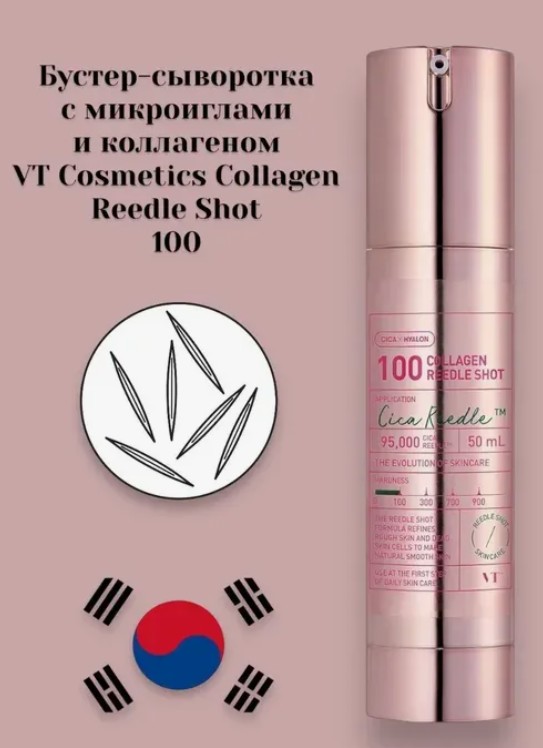 Бустер-сыворотка VT Cosmetics Collagen Reedle Shot 100 повышает эластичность и упругость, сокращает выраженность морщин и сужает расширенные поры.
