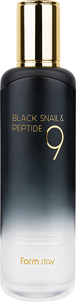 FARMSTAY Black Snail & Peptide9 Perfect Emulsion омолаживающая эмульсия для лица с пептидами и муцином черной улитки