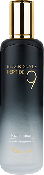 FARMSTAY Black Snail & Peptide9 Perfect Toner антивозрастной тонер для лица с пептидами и муцином улитки