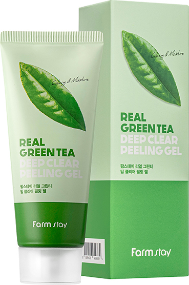 FARMSTAY Real Green Tea Deep Clear Peeling Gel гель-скатка отшелушивающая для лица с зеленым чаем