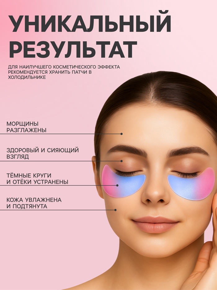 Способ применения: извлеките патчи с помощью лопаточки и нанесите на очищенную кожу вокруг глаз. Снимите через 20–30 минут и сделайте лёгкий массаж подушечками пальцев. Для достижения наилучшего эффекта храните упаковку с патчами в холодильнике."