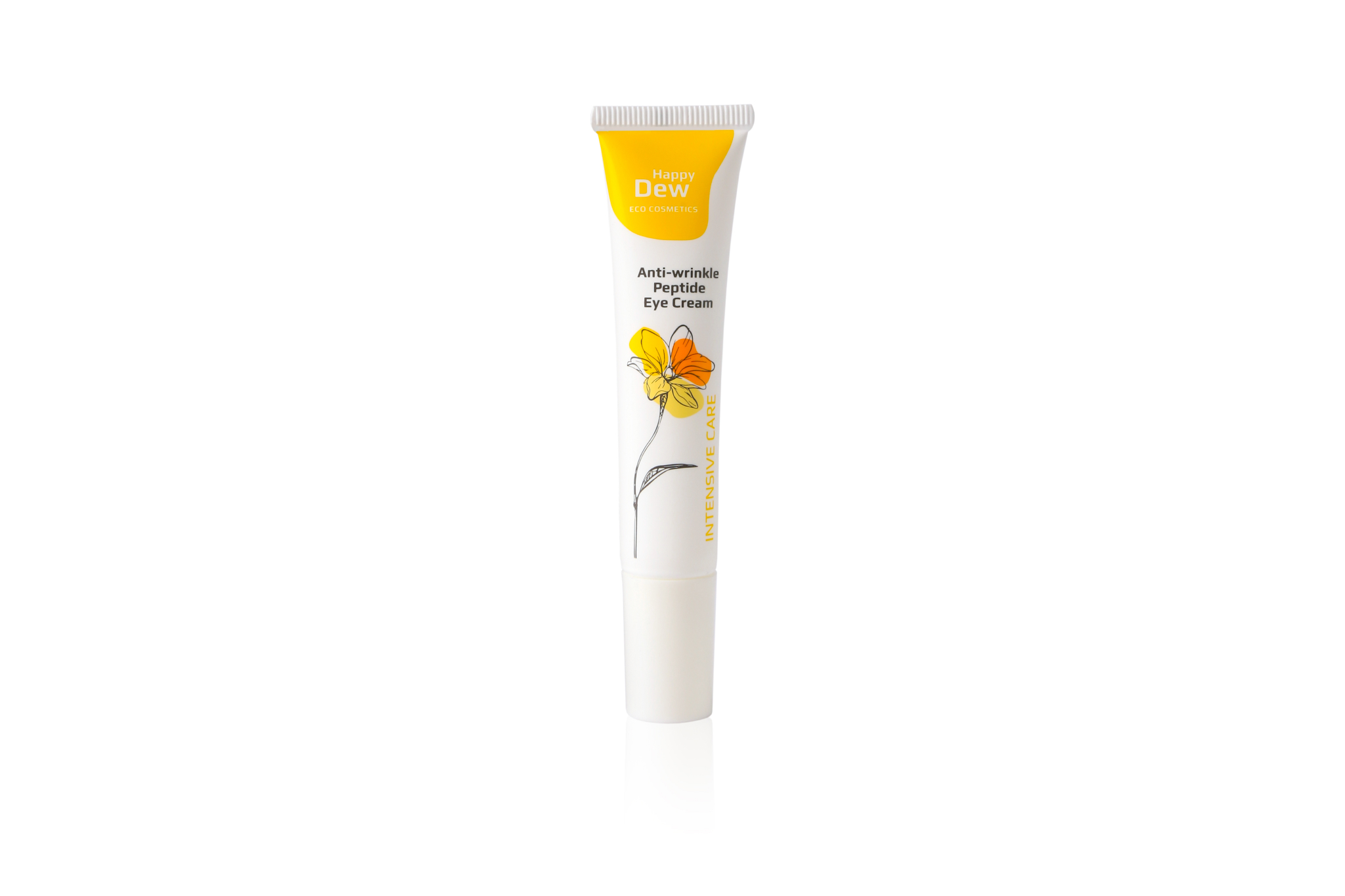 Нежная и тонкая кожа вокруг глаз больше всего подвержена риску воздействия внешних факторов или возрастных изменений. Именно здесь появляются первые мелкие морщинки, которые выдают возраст, недосыпы, усталость или перенесенный недавно стресс. Но это можно исправить! Пептидный крем для кожи вокруг глаз против морщин HAPPY DEW поможет вернуть молодость и сияние вашей коже. Мощное сочетание комплекса пептидов, гиалуроновой кислоты и растительных экстрактов способствует восстановлению упругости и эластичности кожи, сокращению глубины морщин и следов усталости. Также попробуйте пройти бесплатную диагностику в сервисе FaceScan.pro . Нейросеть выявит особенности кожи и выдаст оптимальный список косметики компании. Удивительное сочетание цветочных экстрактов и свежести утренней росы для красоты и молодости вашей кожи! Продукты коллекции HAPPY DEW созданы на основе природных свойств целого комплекса цветочных экстрактов, которые обеспечивают бережный уход и заботятся о здоровье кожи. Каждый продукт линейки HAPPY DEW содержит Цветолат — живительную влагу росы из распустившихся лепестков цветов. Роса, находясь в цветке, активно насыщается цветочным нектаром. Мы используем Цветолаты для создания косметики HAPPY DEW, полученные при помощи специальной эко-технологии Tsvetolat technology™ ecological. Tsvetolat eco-technology™ — получение экстрактов цветов, не нарушая их цветения. Это зарегистрированная технология получения нектара цветов. Умывание цветочной росой — самый эффективный способ омоложения кожи, она восстанавливает местный иммунитет и микробиом кожи, насыщает эпидермис живительным нектаром. АКТИВНЫЕ КОМПОНЕНТЫ Гиалуроновая кислота — основной компонент дермы, который участвует в процессах регенерации, притягивает и накапливает влагу на поверхности кожи, создаёт лёгкую защитную плёнку, предотвращает испарение воды и обезвоживание. Компонент обеспечивает интенсивное увлажнение и помогает повысить упругость кожи, молекулы гиалуроновой кислоты заполняют собой морщины, делая из менее заментыми. Комплекс пептидов оказывает омолаживающее действие: способствует интенсивному увлажнению, уменьшению выраженности мелких морщин и тёмных кругов под глазами, стимулирует процессы обновления и регенерации. Экстракт эдельвейса обладает антиоксидантным действием, способствует восстановлению кожи, придавая ей здоровый и сияющий вид. Состав (INCI): Aqua, Cetearyl Alcohol, Cetearyl Glucoside, Sodium Hyaluronate, Caprylic / Capric Triglyceride, Cetearyl Ethylhexanoate, Coco-Caprylate/Caprate, Ethylhexyl Stearate, Leontopodium Alpinum (Edelweiss) Flower Extract, Glycerin, Panthenol, Cetyl Stearyl Alcohol, Tocopheryl Acetate, Butyrospermum Parkii (Shea) Oil, Silica, Caprylyl Glycol, Ethylhexylglycerin, SH - Octapeptide-4, Xanthan Gum, Allantoin, Palmitoyl Tripeptide-1, Palmitoyl Tetrapeptide-7, Palmitoyl Hexapeptide-12, Parfum, Lecithin, Acetyl glutamine, SH - Oligopeptide-1, SH - Oligopeptide-2, SH - Polypeptide-1, SH - Polypeptide-9, SH - Polypeptide-11, Bacillus / Soybean / Folic Acid Ferment Extract, Butylene glycol, Artemisia Vulgaris Extract. Способ применения: Наносить крем утром и вечером похлопывающими движениями на очищенную кожу век. Противопоказания: не использовать при индивидуальной непереносимости компонентов. Объем: 15 мл Срок годности: 18 месяцев с даты изготовления. Хранить при температуре от +5 до +25 °С, при отсутствии непосредственного воздействия солнечного света в местах, недоступных для детей. Товар, требующий специального температурного режима.