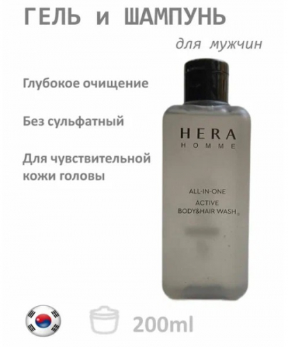 Многофункциональное очищающее средство для тела и волос HERA Homme All in One Active Body&Hair Wash — это универсальный гель для душа и шампунь, созданный для активных мужчин.
