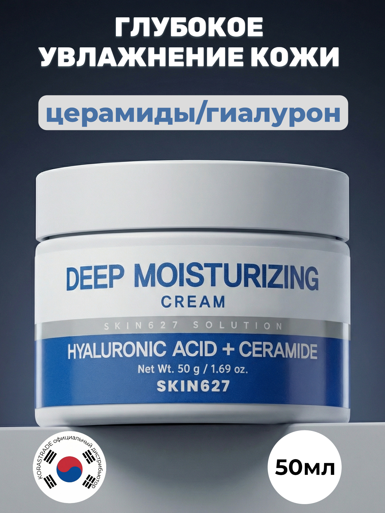SKIN627 Крем увлажняющий с гиалуроновой кислотой, керамидами и маслом какао Deep Moisturizing Cream (50 мл)