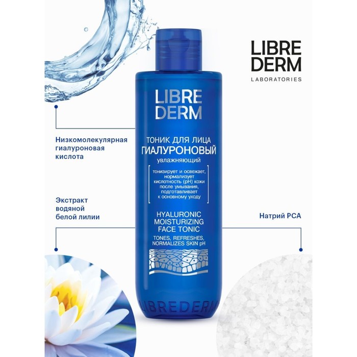 Гиалуроновый увлажняющий тоник для лица бережно устраняет с поверхности кожи остатки очищающего средства, восстанавливает pH баланс кожи. Экстракт водяной белой лилии, входящей в состав продукта, тонизирует кожу и способствует ускорению процесса регенерации кожи. Обладает омолаживающим, тонизирующим и увлажняющим действием. Бетаин смягчает кожу, регулирует концентрацию и баланс важных солей в клетках кожи и в межклеточных пространствах. Низкомолекулярная гиалуроновая кислота и мочевина глубоко увлажняют кожу и оказывают общее омолаживающее действие. Результат - кожа чистая, увлажненная и подготовлена к нанесению средств основного ухода. Способ применения: используйте тоник каждый день утром и вечером после очищения кожи. Смочите тоником ватный диск и протрите им кожу, затем нанесите средство основного ухода.