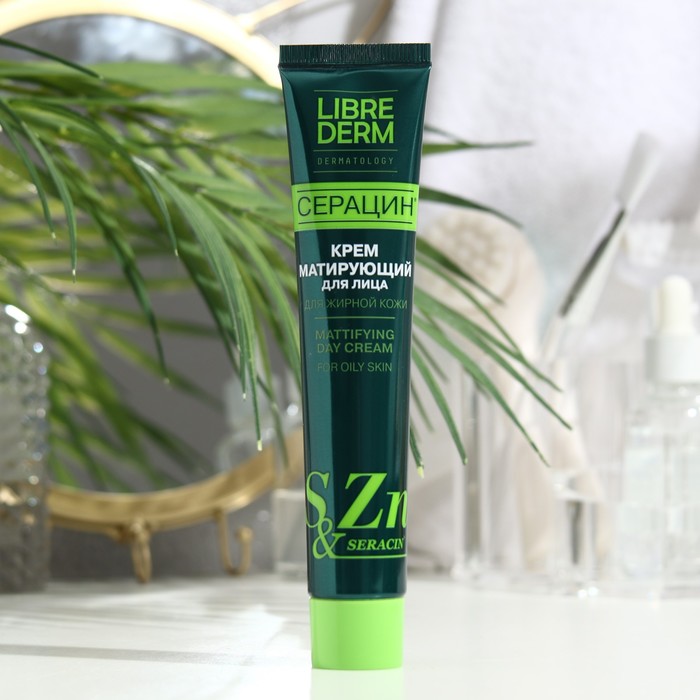 Крем LIBREDERM Серацин дневной, матирующий предназначен для ежедневного ухода за проблемной, жирной кожей лица. Корректирует работу сальных желез, не позволяя выделять излишнее количество кожного жира, придает коже матовую бархатистость. Эффективно увлажняет, уменьшает покраснения, предупреждает появление акне. Увлажняющий крем для жирной кожи лица с комплексом нового поколения (экстракты репейника и гулявника, соль цинка) оказывает антисептическое, себорегулирующее и матирующее действие. Сера регулирует выработку секрета сальных желез, обладает антибактериальной активностью.