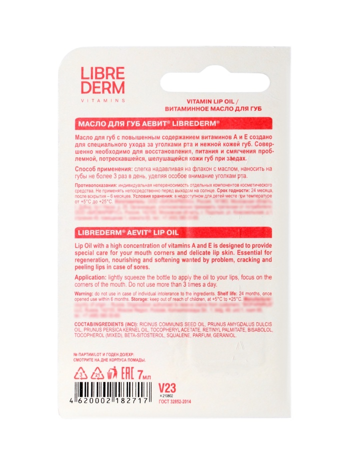 Масло для губ Librederm Аевит с повышенным содержанием витаминов создано для специального ухода за нежной кожей губ. Превосходно питает, смягчает и восстанавливает потрескавшуюся, обветренную и пересохшую кожу губ, мгновенно улучшая их состояние.