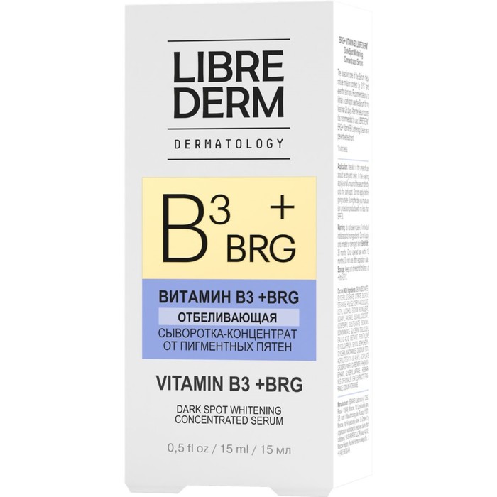 Осветлите и выровняйте тон кожи с помощью интенсивной сыворотки-концентрата Librederm Dermatology с витамином B3 (ниацинамидом). Средство целенаправленно борется с пигментными пятнами, следами постакне и тусклостью, помогая коже вернуть естественное сияние и гладкость. Лёгкая текстура быстро впитывается, не оставляя липкости, а активные компоненты работают на клеточном уровне, предотвращая появление новых участков пигментации.