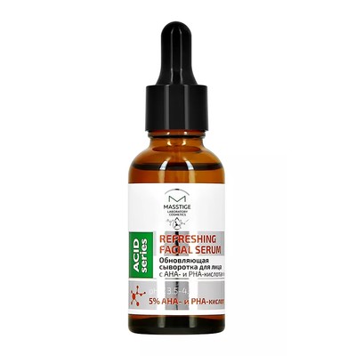 Обновляющая сыворотка для лица с AHA и PHA-кислотами от MASSTIGE эффективно обновляет кожу, выравнивает рельеф и уменьшает морщины. Содержит молочную, лактобионовую и гиалуроновую кислоты для интенсивного увлажнения и защиты. Бетаин и глюконолактон восстанавливают гидробаланс и укрепляют кожный барьер. Подходит для ежедневного использования. Наносите утром и вечером на очищенную кожу.