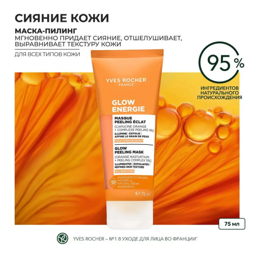 Оранжевая Настурция выбрана экспертами Ив Роше за ее способность улавливать свет. Мы извлекли из растения концентрат, богатый олигосахаридами, который повышает клеточную энергию (2) для придания коже сияния.