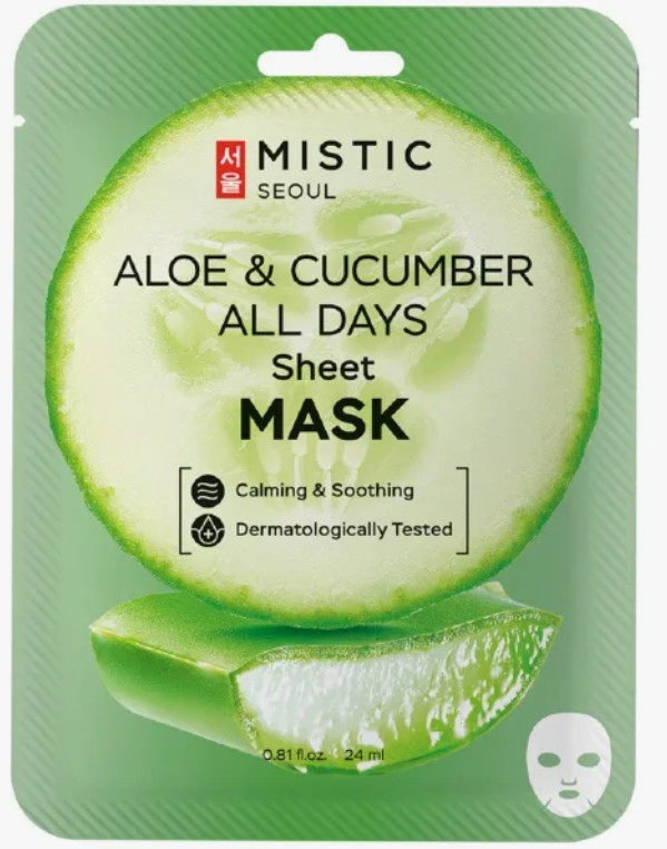 MISTIC ALOE & CUCUMBER ALL DAYS Sheet mask Тканевая маска для лица с экстрактами огурца и алоэ 24мл
