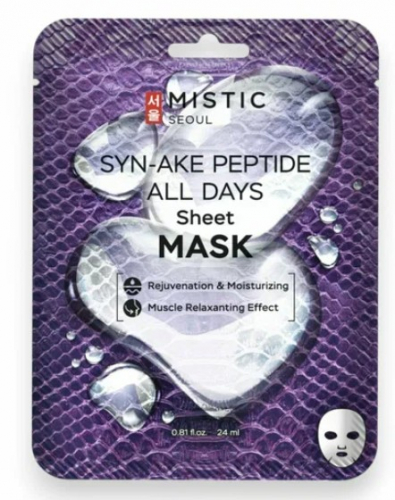 MISTIC SYN-AKE PEPTIDE ALL DAYS Sheet MASK Тканевая маска для лица с пептидом змеиного яда 24мл