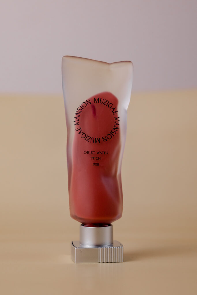 Дизайн сочетает в себе элементы хрупкого материала с контрастирующей стеклу формой, тем самым пробуждая тактильные воспоминания о смятом листе бумаги и эмоции при каждом взгляде на помаду.