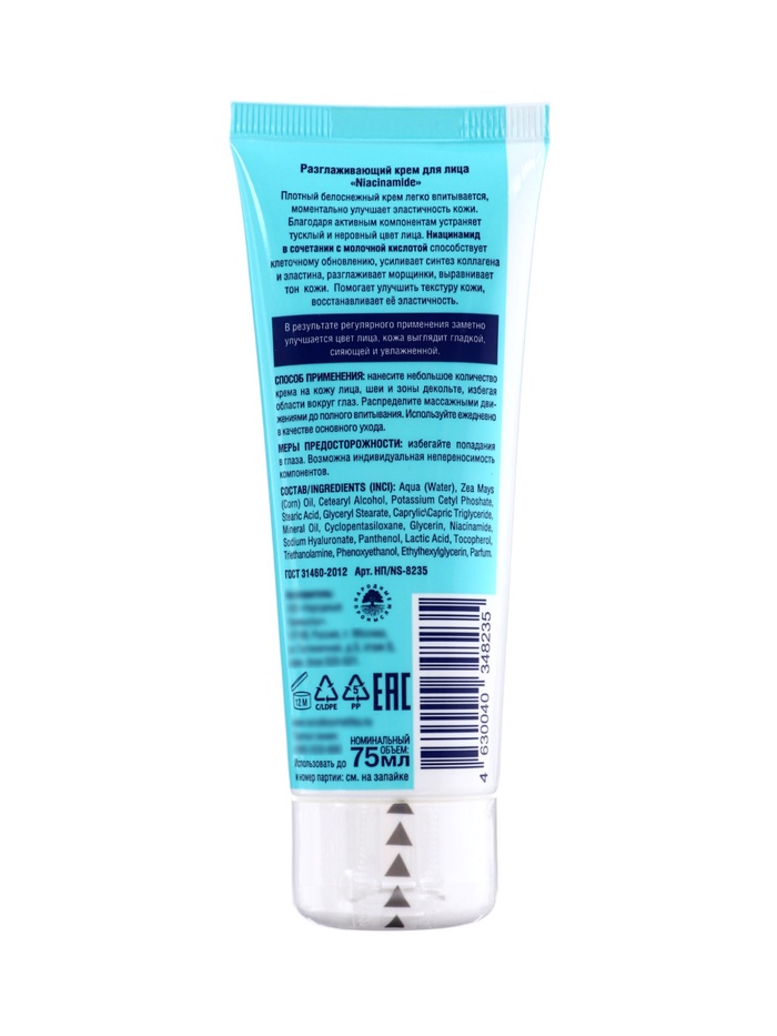 * Ниацинамид — стимулирует синтез коллагена и эластина, выравнивает тон кожи, улучшает её текстуру и эластичность.