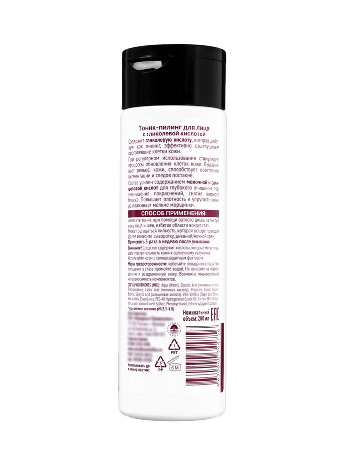 Нанесите небольшое количество тоника-пилинга на очищенную кожу лица с помощью ватного диска, избегая области вокруг глаз. Используйте 1–2 раза в неделю вечером. После применения рекомендуется использовать увлажняющий крем и SPF-защиту на следующий день, так как кожа может быть чувствительна к солнечному свету.