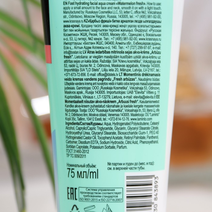 * Лёгкая охлаждающая формула аква-крема с ароматом арбуза обеспечивает мгновенное сияние, моментально увлажняет кожу лица и идеально впитывается.